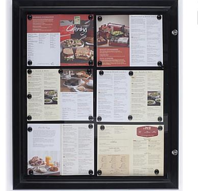 Each unit has a 23-1/2" x 27-1/2" black magnetic surface that can be used to hold (6) standard 8-1/2"w x 11"h size sheets. This bulletin board, restaurant menu case can be used to display landscape or portrait style menus, directories, event listings, business hours or other important information. Users can easily change the prints on the display with the included magnets.
